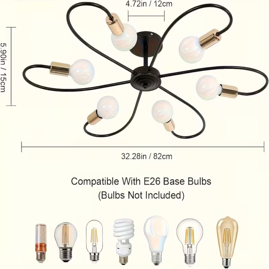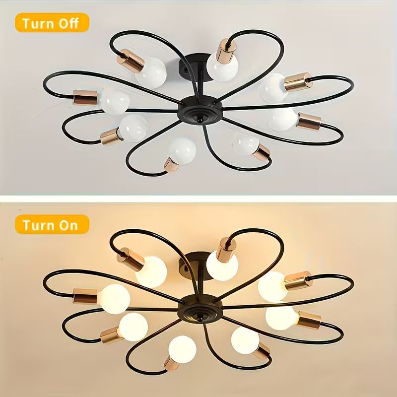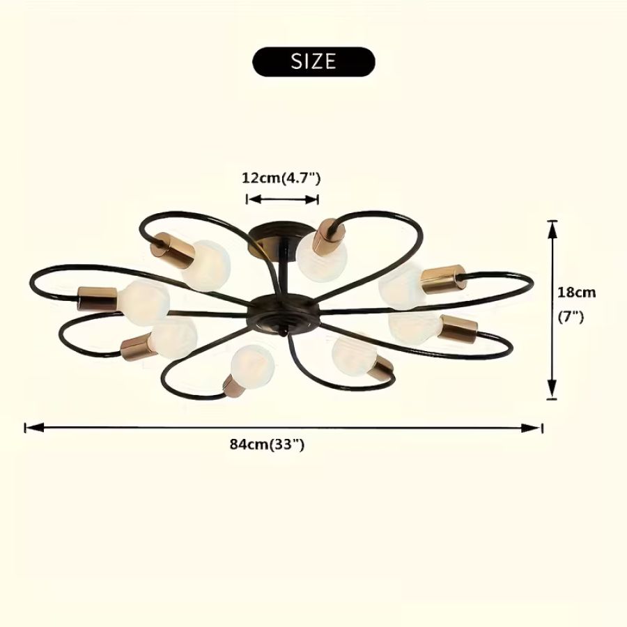 8-Light/6-Light Black and Golden Semi-Recessed Ceiling Light Fixture, Modern Mid-Century Pendant Light, Farmhouse Ceiling Mount Lighting Fixture, Suitable for Living Room, Dining Room, Kitchen Pendant Light